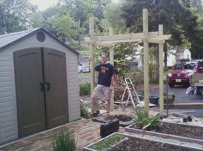 Now, we have a beautiful pergola framing our patio / garden entrance. Looking forward to planting climbing plants at each of the four corners - definitely a clematis, maybe a seedless grape, maybe a wisteria...